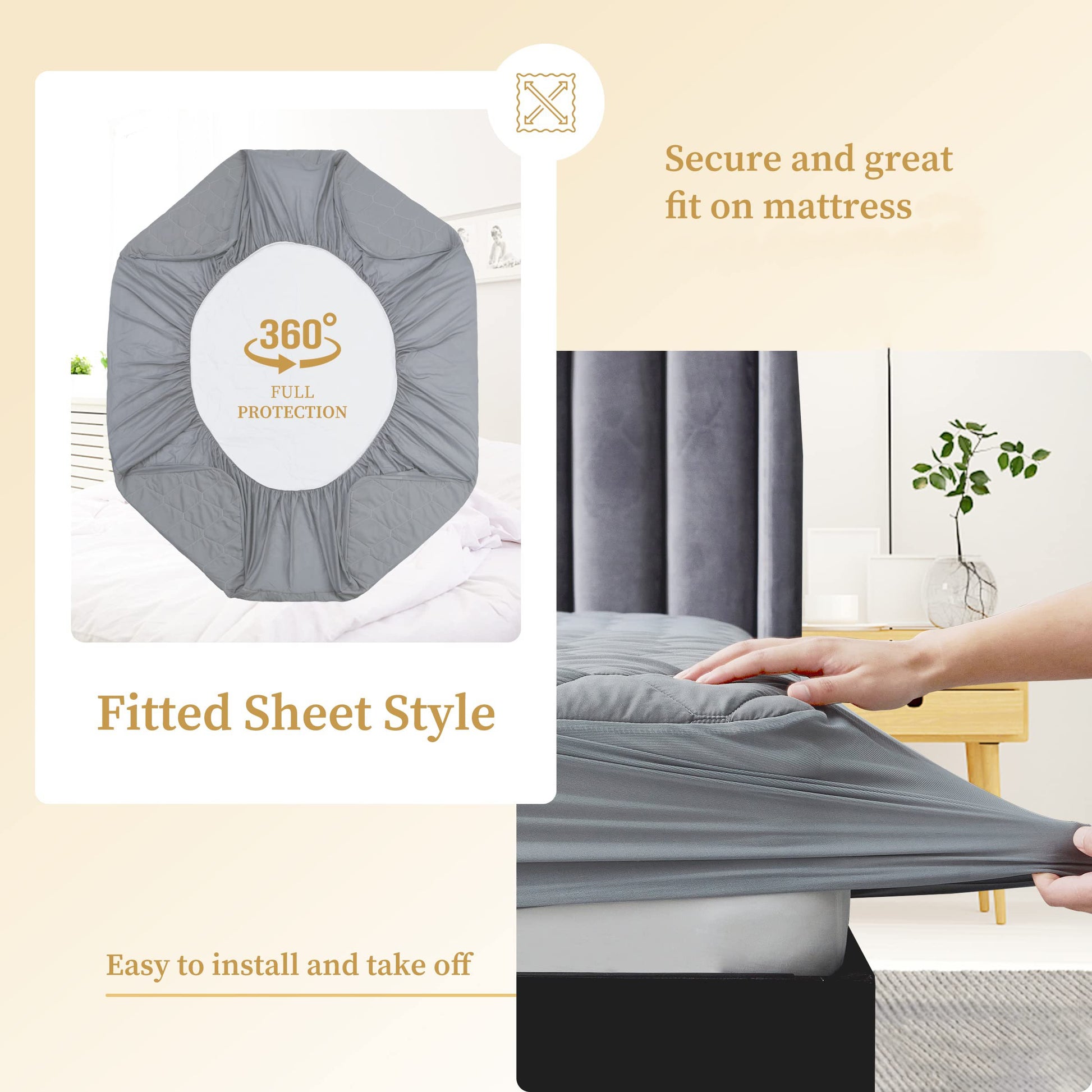 Las fundas de colchon ajustados cubren el colchon: la banda elastica las mantiene firmemente en el lugar correcto. Esto ahorra mucho el tiempo que necesita para colocar el colchón todos los días, lo que le permite tener más tiempo libre.
