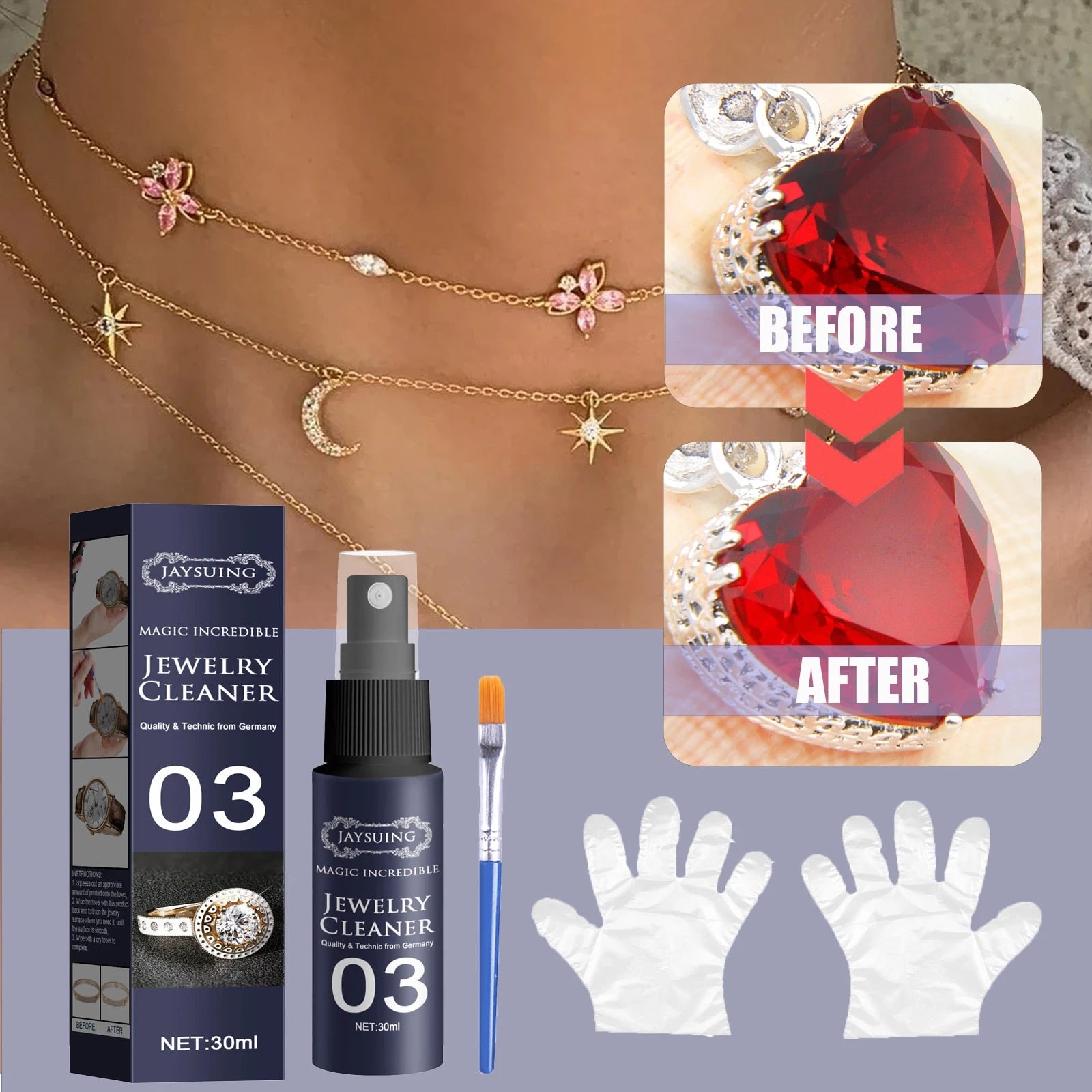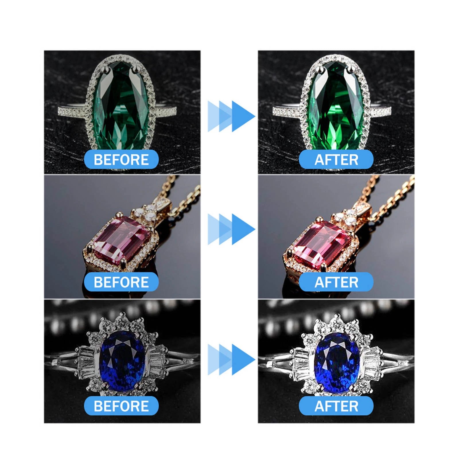 Sin amoníaco, sin productos químicos agresivos que puedan dañar sus joyas y otras superficies.